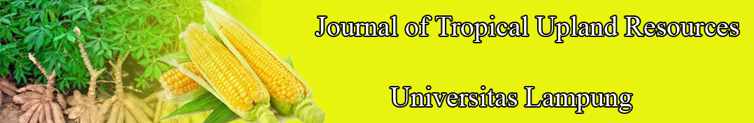 Journal of Tropical Upland Resources (J. Trop. Upland Res.) diterbitkan oleh Lembaga Penelitian dan Pengabdian pada Masyarakat (LPPM) Universitas Lampung sebagai sarana untuk mempublikasikan hasil penelitian, artikel review dari peneliti-peneliti di bidang (1) karakteristik dan produktivitas lahan kering; (2) konservasi sumber daya alam lahan kering; (3) dinamika sosial dan ekonomi pengelolaan wilayah lahan kering; (4) perilaku sosial budaya; (5) kebijakan pengelolaan lahan kering; (6) pemanfaatan sumber daya alam lahan kering. Jurnal ini terbit dua kali setahun (Maret dan September), volume pertama terbit pada tahun 2019 dengan nama Journal of Tropical Upland Resources dengan P-ISSN 2686-5254 dan E-ISSN 2686-1151. Lahan kering (upland, rainfed) adalah kawasan lahan tidak tergenang (oksidtif) yang berkaitan dengan daya dukungnya terhadap kehidupan dan kesejahteraan hidup manusia. Wilayah lahan kering mencakup semua komponen fisik berupa topografi, iklim, tanah dan air, maupun komponen biotik seperti manusia, hewan dan tumbuhan. Wilayah lahan kering terhampar dari daerah hulu sampai daerah hilir dengan fisiografi perbukitan sampai dataran di Daerah Aliran Sugai (DAS) maupun lanskap. Sumber utama air lahan kering berupa air hujan atau air irigasi tanpa penggenangan (green water).
