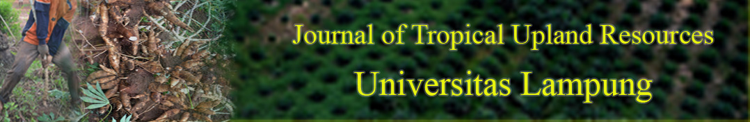 Journal of Tropical Upland Resources (J. Trop. Upland Res.) diterbitkan oleh Lembaga Penelitian dan Pengabdian pada Masyarakat (LPPM) Universitas Lampung sebagai sarana untuk mempublikasikan hasil penelitian, artikel review dari peneliti-peneliti di bidang (1) karakteristik dan produktivitas lahan kering; (2) konservasi sumber daya alam lahan kering; (3) dinamika sosial dan ekonomi pengelolaan wilayah lahan kering; (4) perilaku sosial budaya; (5) kebijakan pengelolaan lahan kering; (6) pemanfaatan sumber daya alam lahan kering. Jurnal ini terbit dua kali setahun (Maret dan September), volume pertama terbit pada tahun 2019 dengan nama Journal of Tropical Upland Resources dengan P-ISSN 2686-5254 dan E-ISSN 2686-1151. Lahan kering (upland, rainfed) adalah kawasan lahan tidak tergenang (oksidtif) yang berkaitan dengan daya dukungnya terhadap kehidupan dan kesejahteraan hidup manusia. Wilayah lahan kering mencakup semua komponen fisik berupa topografi, iklim, tanah dan air, maupun komponen biotik seperti manusia, hewan dan tumbuhan. Wilayah lahan kering terhampar dari daerah hulu sampai daerah hilir dengan fisiografi perbukitan sampai dataran di Daerah Aliran Sugai (DAS) maupun lanskap. Sumber utama air lahan kering berupa air hujan atau air irigasi tanpa penggenangan (green water).